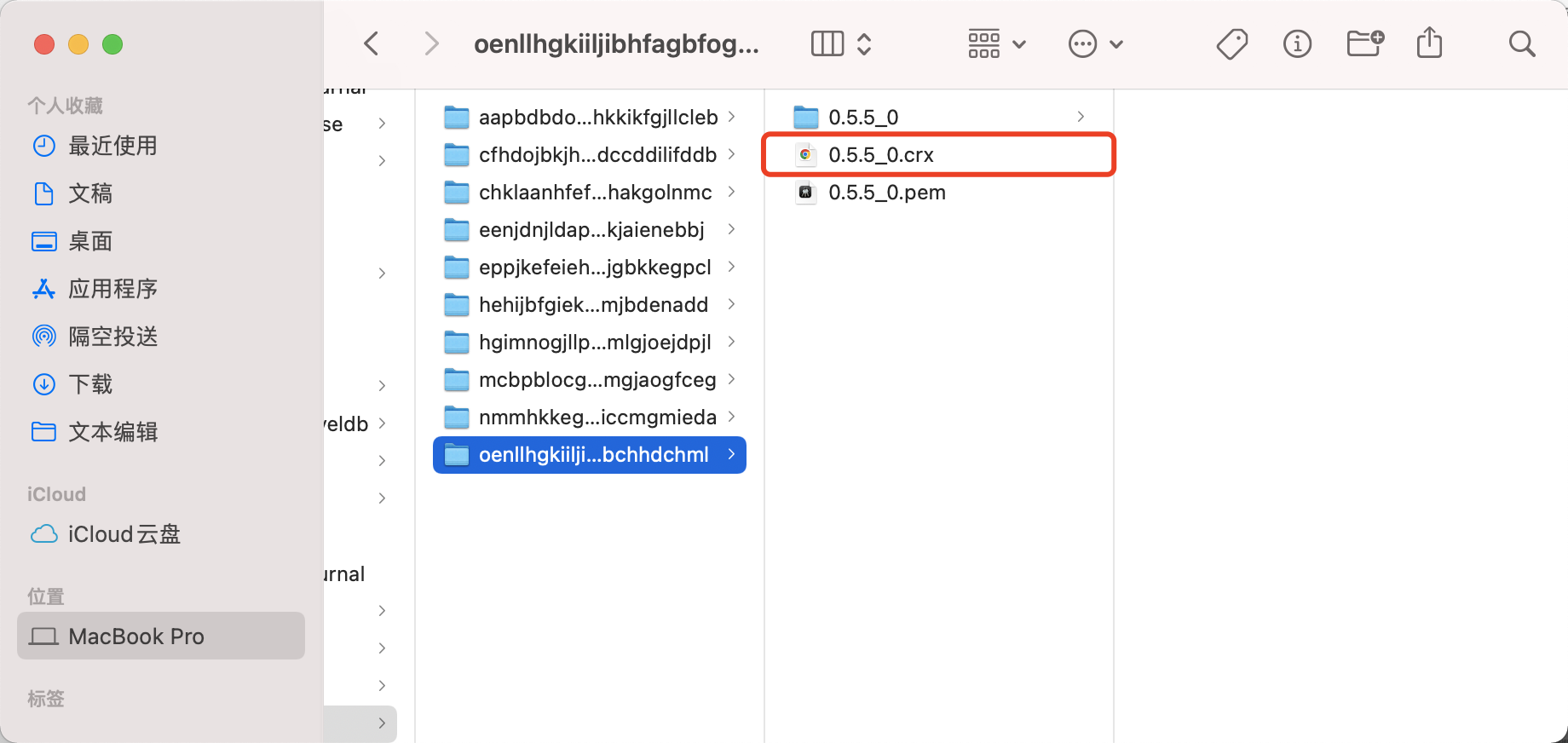 回到刚刚的文件夹,发现一个.crx后缀的文件出现了,这就是我们打包好的插件。